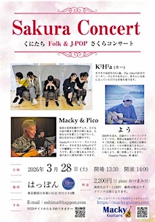 Charge 2,200円 2時 〜 (open 1:30) (高校生以下:\1,100) 出演:よう・K2H2a (カー) 出演:Macky & Pico >> フライヤー << |
